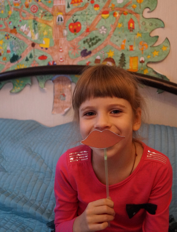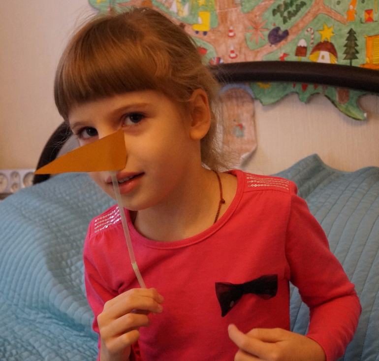 Маски для фотосессии она сама вырезала. Я приклеивала их скотчем к трубочкам для коктейлей. Ребенок был в восторге, особенно, когда она стала фотографом. Приходилось ждать, когда она насмеется и сможет фотоаппарат ровно держать.