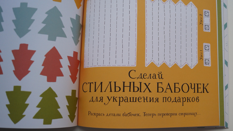 Обложка разворачивается и вот у Вас есть бумага для поделок с новогодней темой.
