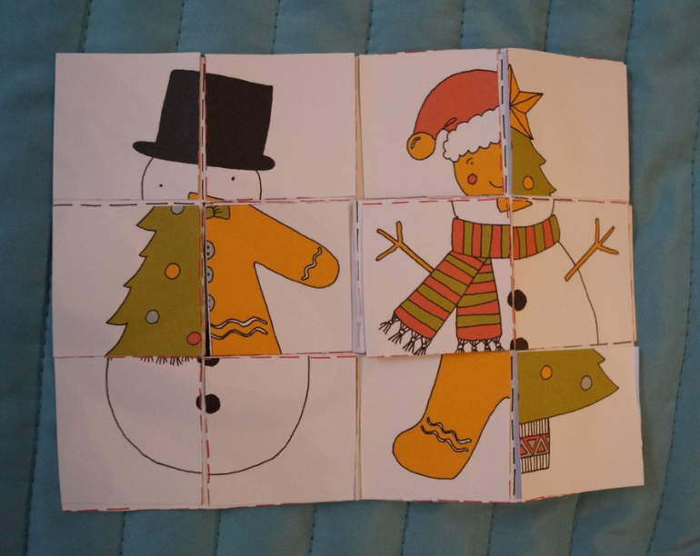 Потом мы сделали ФОКУС с волшебными картинками. Сначала нужно показать картинку с перепутанными фрагментами. Потом по хитрому плану складывать квадратики и будут получаться целые изображения. Можно наоборот показать сначала целую картинку, потом разобрать и попросить собрать снова. Это будет уже ГОЛОВОЛОМКА.