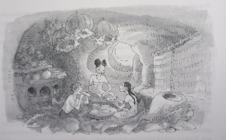 Иллюстраций, на удивление, много. Они не цветные, но такие детальные. Хотелось бы их увидеть покрупнее. А ещё лучше - в цвете! На мой взгляд, они эту историю делают немного мягче, где-то даже с юмором смотришь на происходящее.