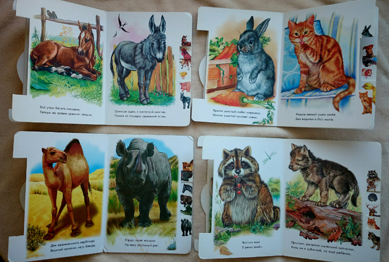 Ребенок должен уметь обращаться с книгой, не рвать ее и не есть! Для этого существуют различные книжки-игрушки (даже с тактильными/звуковыми/световыми эффектами) и книжки-кубики (которые не обязательно иметь в таком количестве,как у нас).