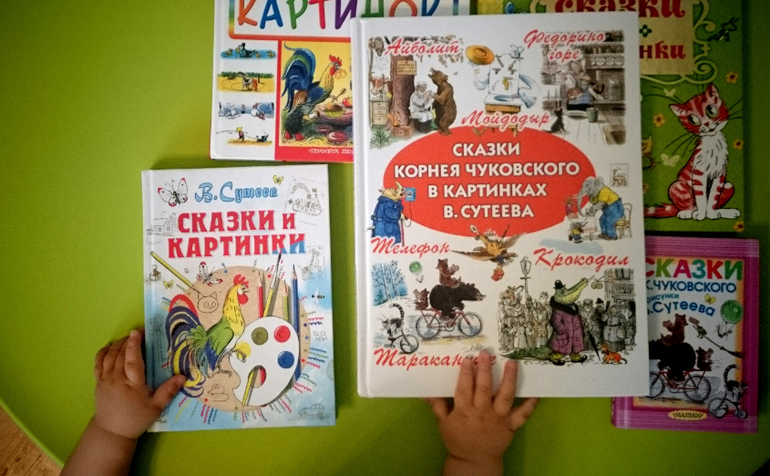К. Чуковский. "Сказки Корнея Чуковского в картинках В. Сутеева". В Лабиринте. Тут и "Айболит", и "Телефон", и "Тараканище", "Мойдодыр", "Федорино горе", "Крокодил".