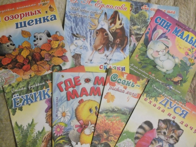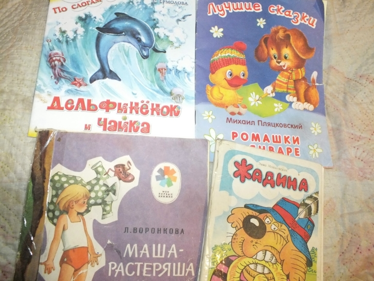 Медвежонок Микулька и Дуся-это мои любимцы))).А Ясна часто выбирает Машу-растеряшу,Жадину и Теремки.Маша-растеряша мне очень нравится в таком исполнении,уже потрепанная,я бы поменяла.Жадина ..хмм..сомнительные иллюстрации,но ведь папина же еще!