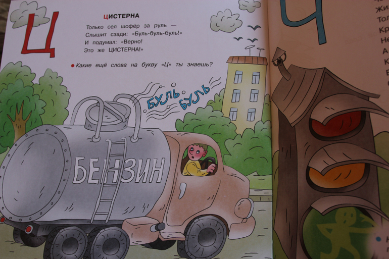 Выбор определенного стихотворения на указанную букву иногда странный, но мы воспринимаем пока эту книгу лишь как сборник стихотворений про машинки и другую технику!