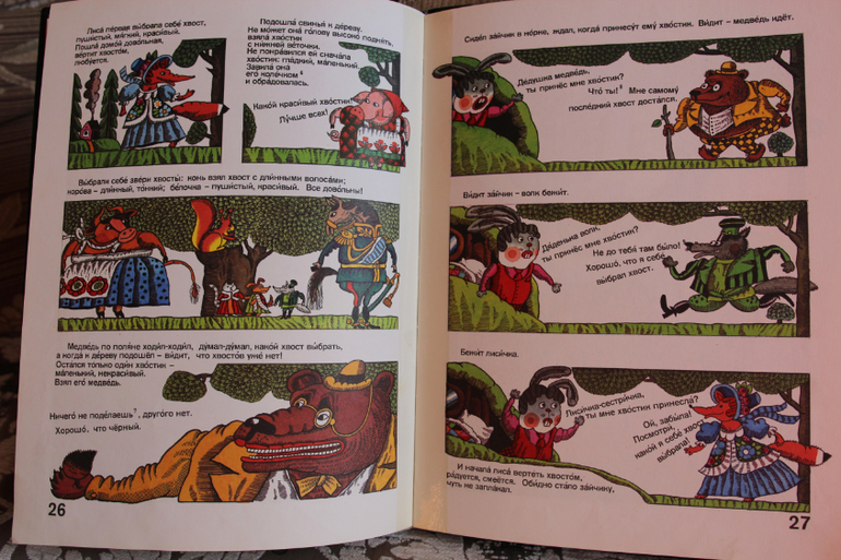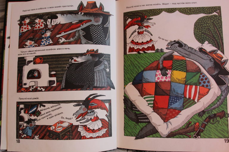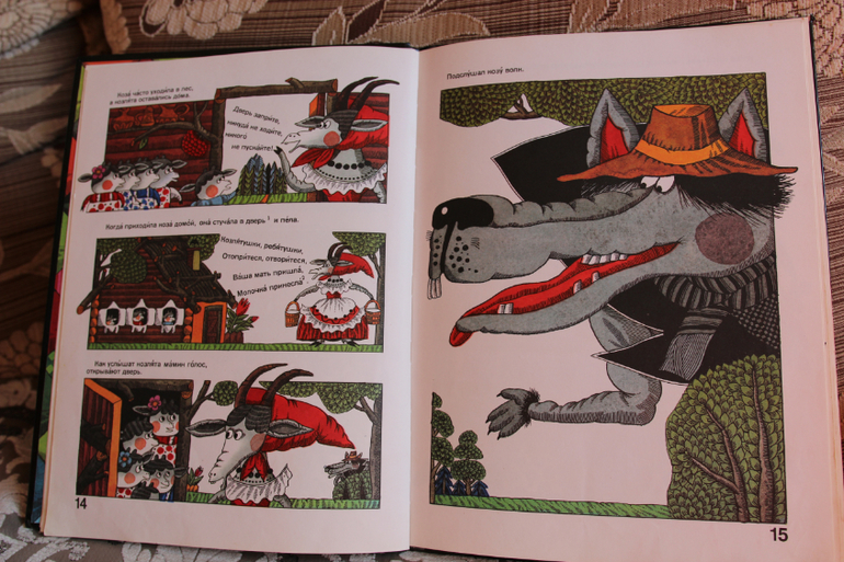 В детстве у меня было немного иллюстрированных книг, поэтому от этого волка с бутоньеркой в петлице и медведя с венком из цветочков на голове я была просто в восторге!