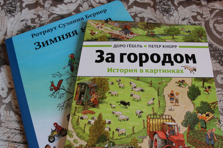 Начну с виммельбухов, доросли мы до них. Рассматриваем понемногу, когда у мамы и папы начинает заплетаться язык от стихов.