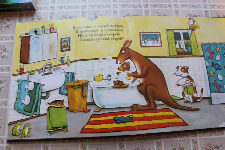 На каждой страничке всего по одному четверостишью, перевод нашей любимой Бородицкой, иллюстрации не менее любимого Шиффлера ( которые работают в тандеме с Дональдсон).
