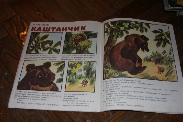 Ой, сказки малышам с Каштанчиком, прям как наша. Осталась с моего детства, тоже безмерно любим) И тоже без обложки) Даже не помню, как она была)))