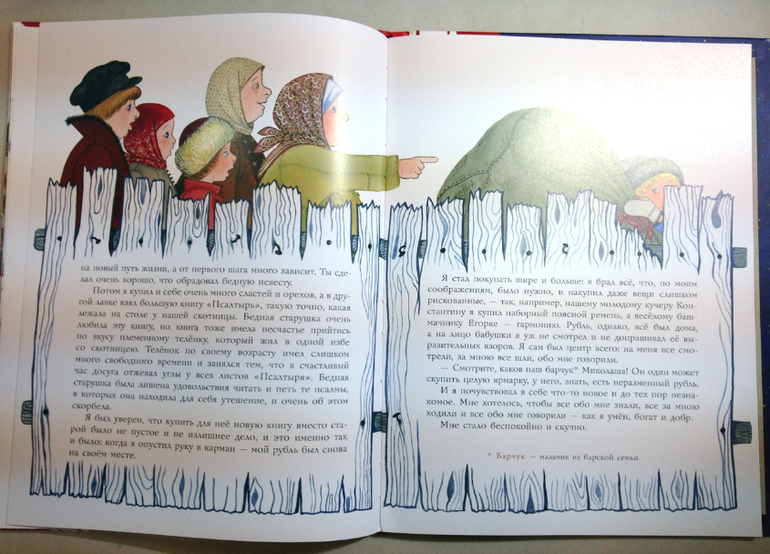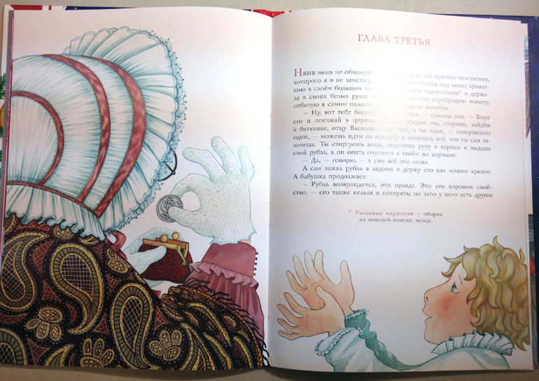 Праздничное оформление книги делает ее отличным подарком. На обложке сияют и переливаются стекловидные пуговицы жилета - главный искус, которому подвергся герой рассказа. Обратите внимание на детали - лаком выделена даже прострочка жилета. Бумага мелованная, тираж отпечатан в Латвии.