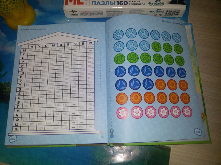 сама книга написана в виде историй, которые происходят со смешариками. Есть задания, которые предложены в форме игры.В читарике много картинок ассоциаций. В конце есть еще приложение.