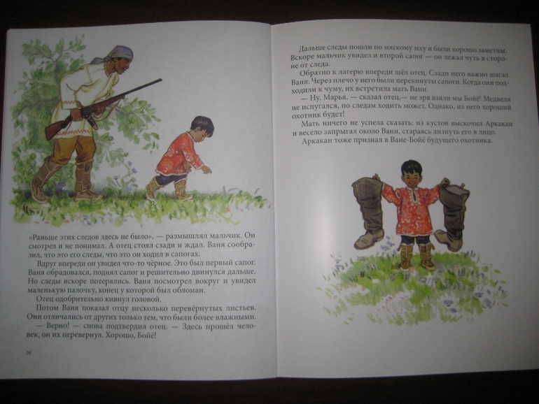 Само произведение вполне душевное и интересное в том числе с точки зрения знакомства с национальными традициями воспитания из мальчика охотника. Читается легко, на одном дыхании. Образы яркие и запоминающиеся, а главное - правдивые, естественные, взятые, по всей видимости, из личных наблюдений автора. Приведу кусочек: