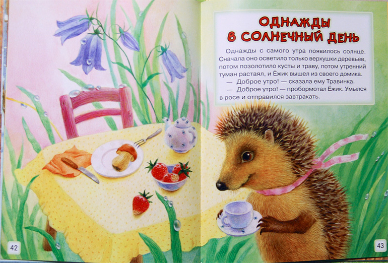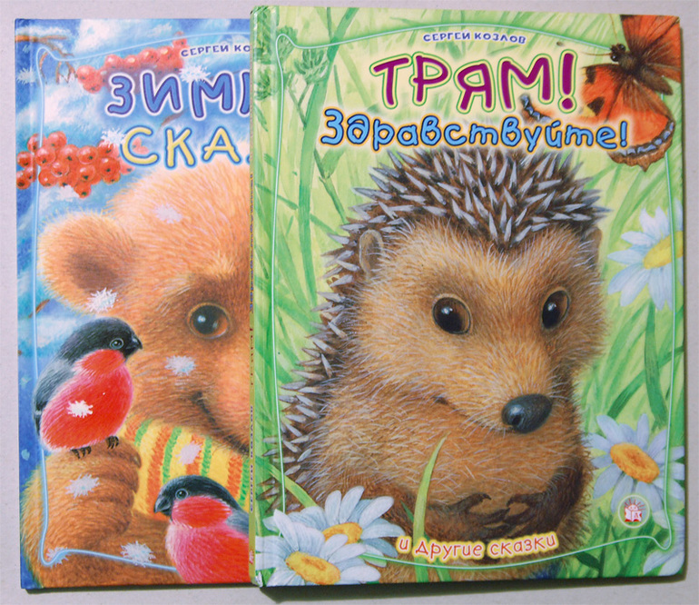 Наши любимые последние 4. Иллюстрации на каждой странице, часто на весь разворот, с погружением в сказочную атмосферу. Трогательные, пастельные, добрые рисунки. Мне кажется для первого знакомства с миром Сергея Козлова в возрасте 3-4 года это лучший вариант и я искренно рекомендую, даже если у вас уже есть сборники.