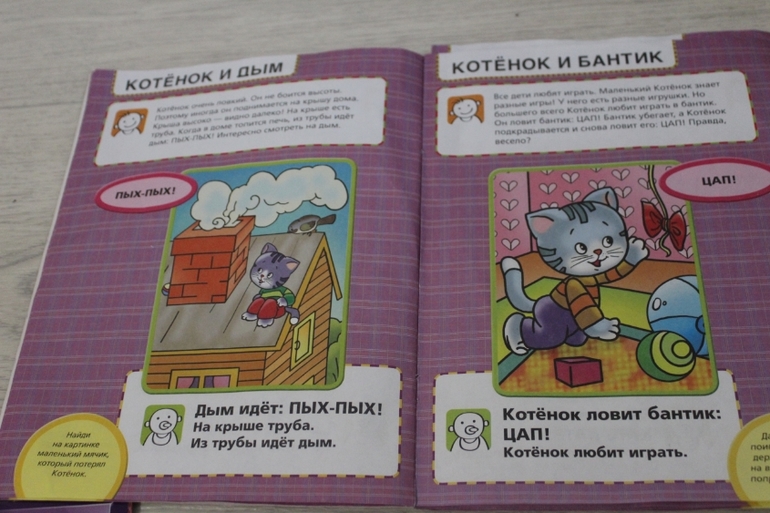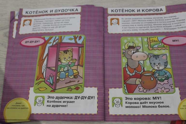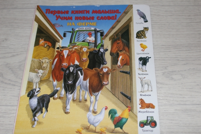 Принцип книги точно такой же. Моя дочь из этой книги почерпнула намного больше слов. И почти с первого раза повторила за мной все коротенькие словечки по книге. И не смотря на то, что корова на мой взгляд на картинке мало узнаваема, малышка тычет в нее и говорит "ммму"