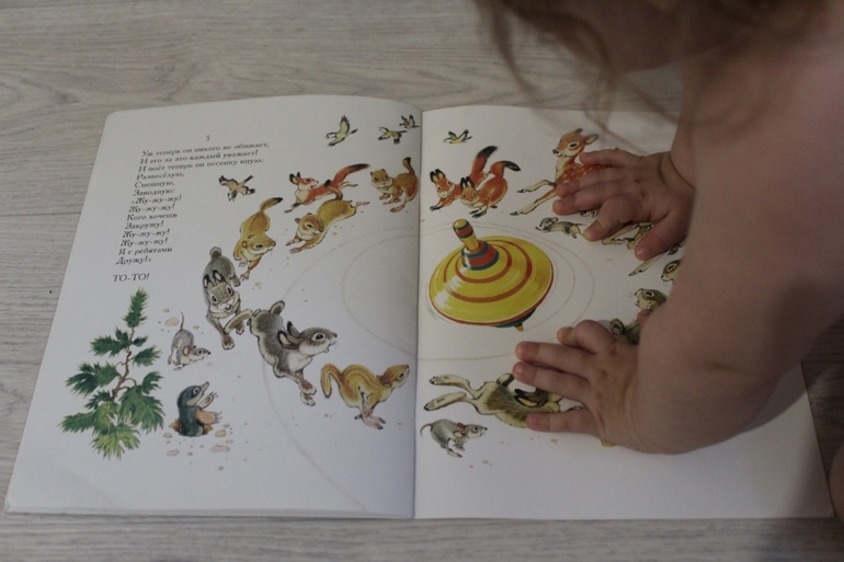 Эта книга у нас не так популярна как две предыдущие, но все же мы иногда ее достаем и читаем. Как говорят все животные Юля по этой книге уже говорит. Теперь мы просто рассуждаем о том, что нарисовано на картинке и т.п. Точнее мама рассуждает, а Юля уверенно кивает)