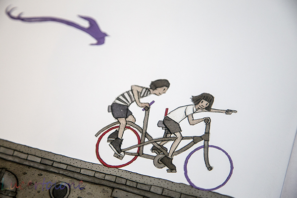 А путешествовать он захотел на воздушном шаре...но не на традиционном, а на колесах, да по дороге...и все время по кругу...к дальнему морю ))) Мы с Мишей потом развили эту тему и решили, что это скорее всего транспортное средство, которое могло бы передвигаться за счет энергии ветра. И коль уж в Диминой версии этот шар не взлетает, значит он может служить парусом. Почему бы и нет =)