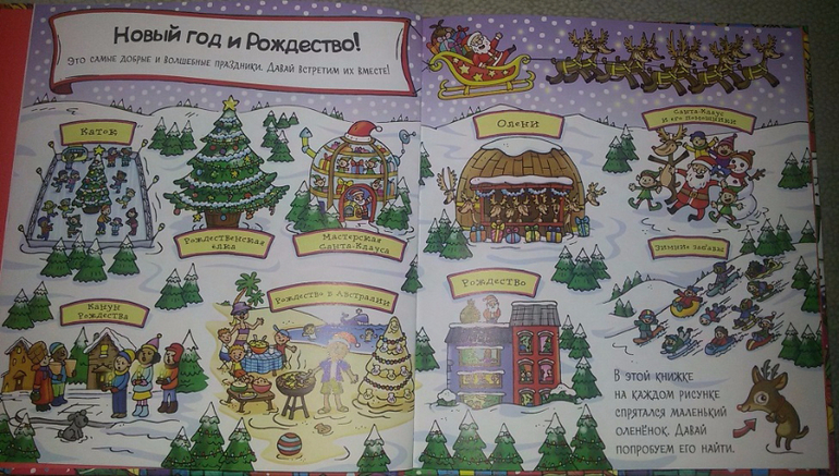 Все как всегда красочно, есть задание на каждой странице, кроме этого еще в конце задания и найти олененка на каждой странице, а уже рассматривать и самим придумывать просто неограниченный полет фантазии.