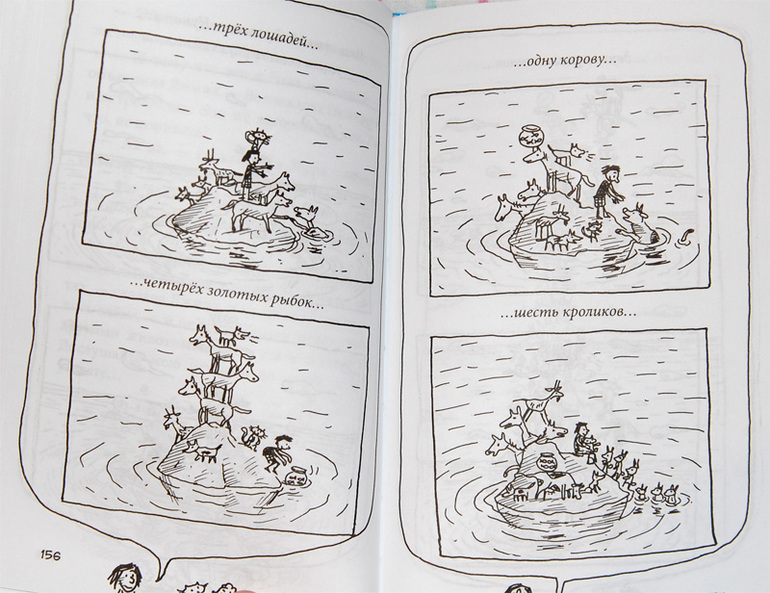 Это книга - комикс практически. Текст там есть, иногда даже на пол-страницы, но больше всего действий описаны с помощью рисунков. В книге свыше 350-ти страниц, на каждой из которых несколько рисунков, то есть их больше тысячи!