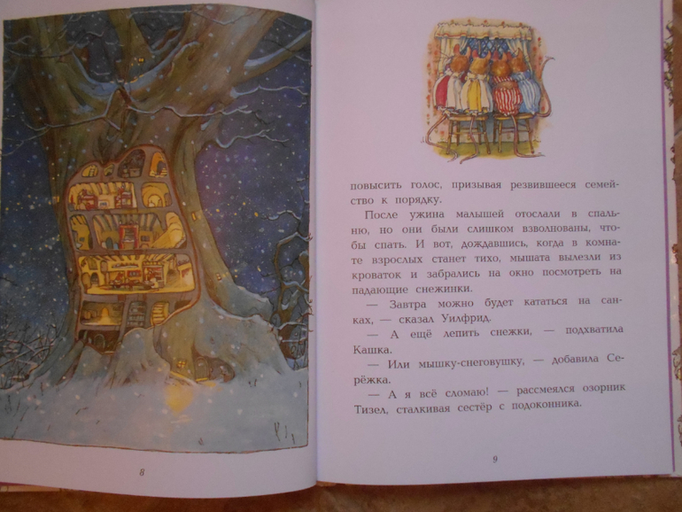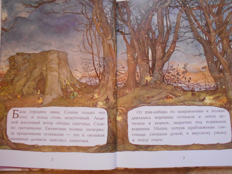 Как-то мы уже приобретали одну книжку из данной серии, но она у нас почему-то тогда "не пошла", увидев иллюстрации к этой зимней истории я решилась на покупку и не зря. История о том, как выпал небывалый снег и мыши устроили бал под землей, не оставила нас равнодушными!![]()