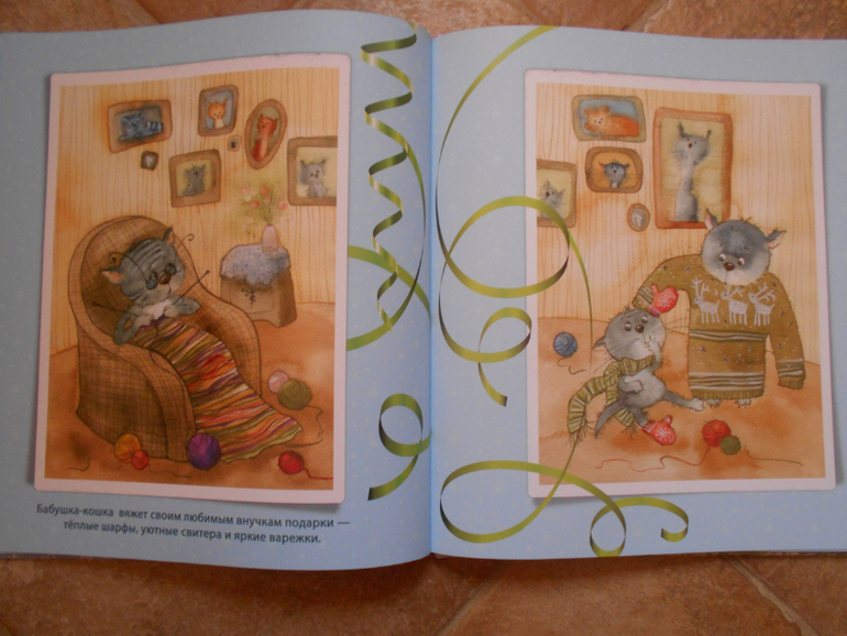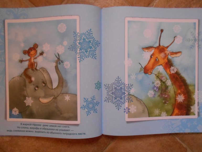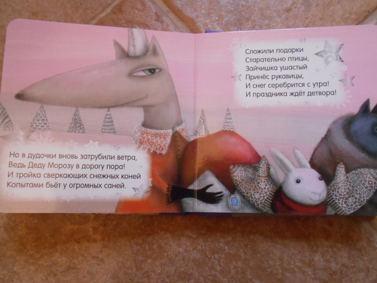 Книга смотрится как большущая новогодняя открытка! По моему скромному мнению, Кирдий Валерия - очень правильный детский художник. Картинки у нее получаются добрые, теплые, но без инфантильной слащавости, которая встречается в современных детских книжках. Почему-то мне эта книжка всегда напоминает новогодний утренник в детском саду:) Ух, как я их любила...![]()
