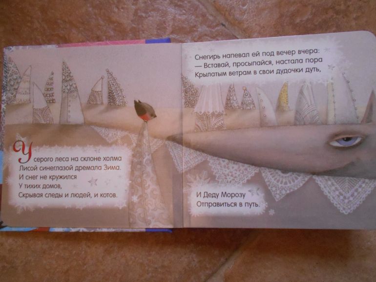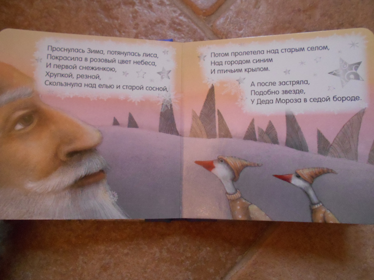 Книжка маленькая, форматом с коробочку для диска. Содержание тоже небольшое, но зато какое!! Дарью Герасимову многие знают по ее удивительной азбуке и здесь тоже чувствуется ее явный талант. Стихи завораживают, и ,кажется, будто ты вслед за строчками паришь над заснеженным лесом. Периодически читаю ее детям нараспев.![]()
