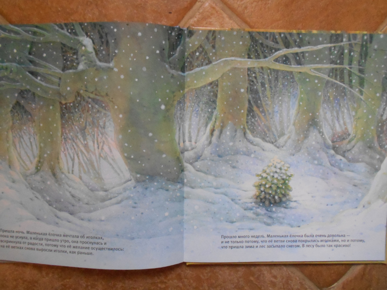 Иллюстрации просто необыкновенные, а история про елочку весьма поучительна... книга учит тому, что надо любить себя таким, каков ты есть и быть благодарным за то, что имеешь.![]()
