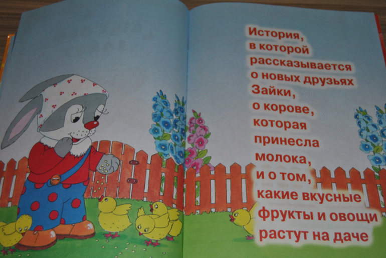 В книге истории не только про Зайку.Часть Времена года про Таню и Ваню, дети приехали в деревню и знакомятся с домашними животными и их детенышами, узнают какую пользу приносятся домашние животные.