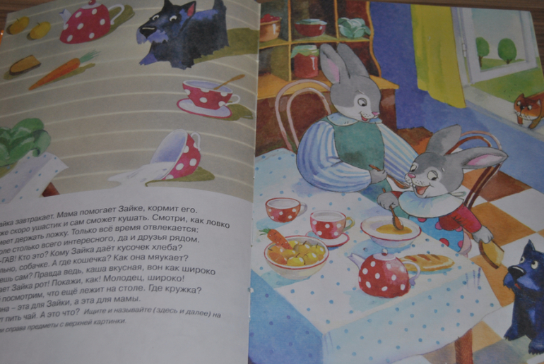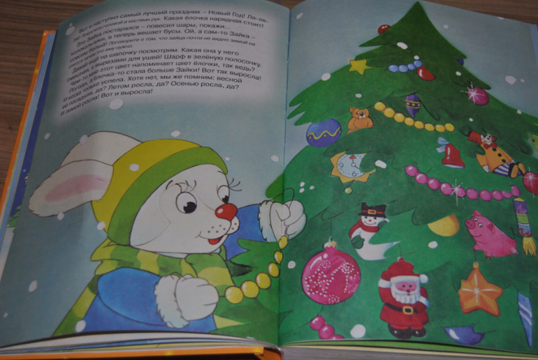 Ребенок узнает о временах года, о пользе домашних животных, о том, что нельзя убегать без спроса и можно потеряться. Есть истории как Зайка болел, Как праздновал День рождения, как впервые пошел в детский сад, почему зайцы шубку зимой меняют...