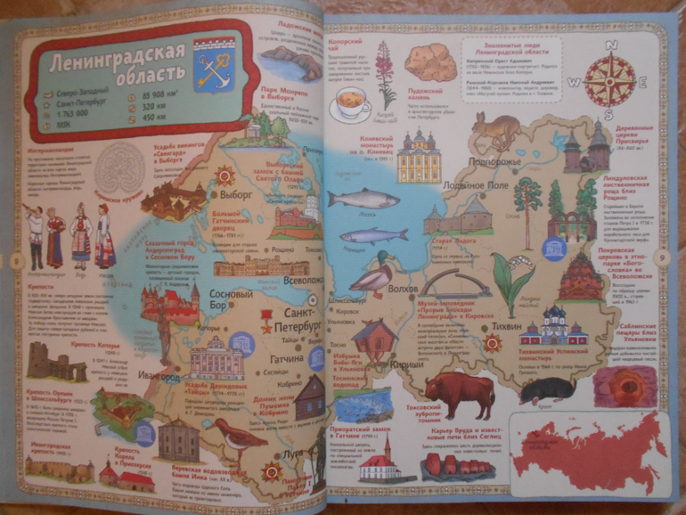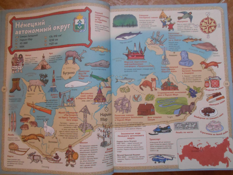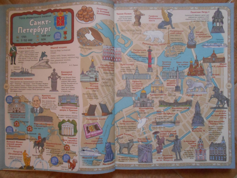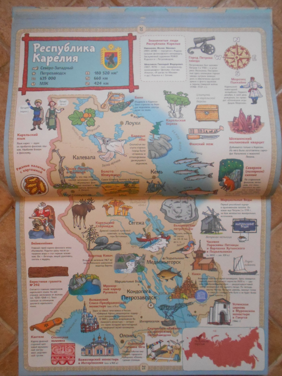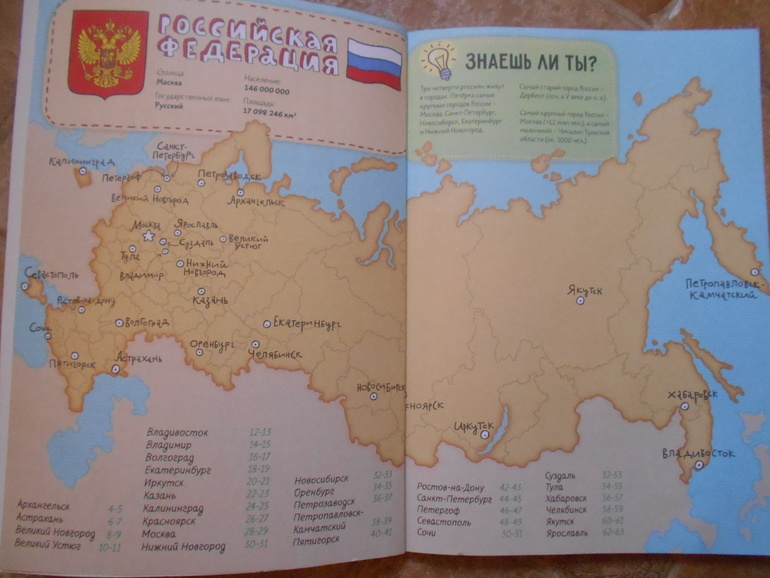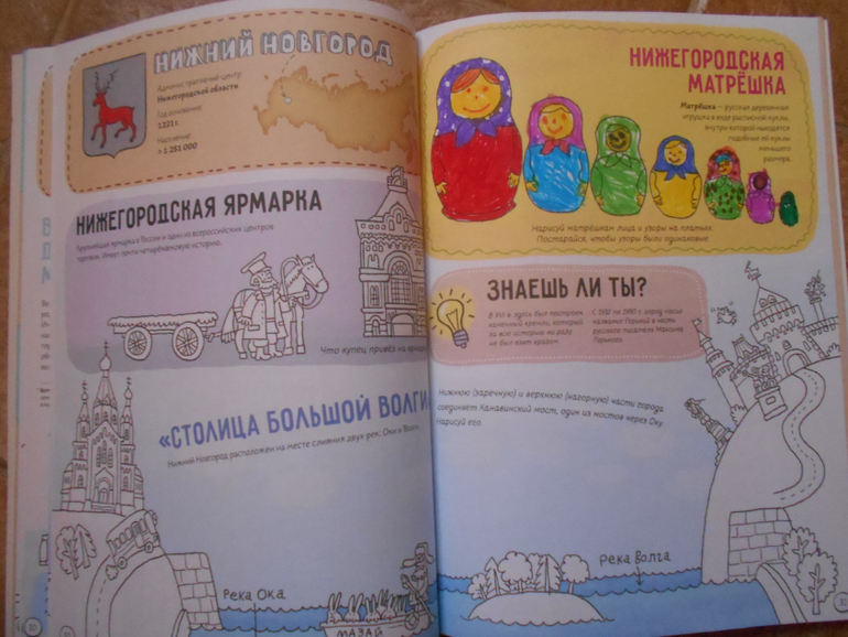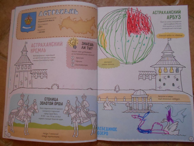 Книга просто восхитительная. Александр Голубев - молодец, однако!) У нас много есть его бродилок-рисовалок, но эта книжка просто таки шедевр! Ну посудите сами, кому бы не хотелось иметь дома книгу в картинках про свою Родину, да еще и интересную?!! В начале все субъекты РФ на картеРассматриваем порой всей семьей. Интересно всем).