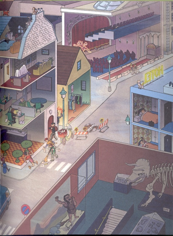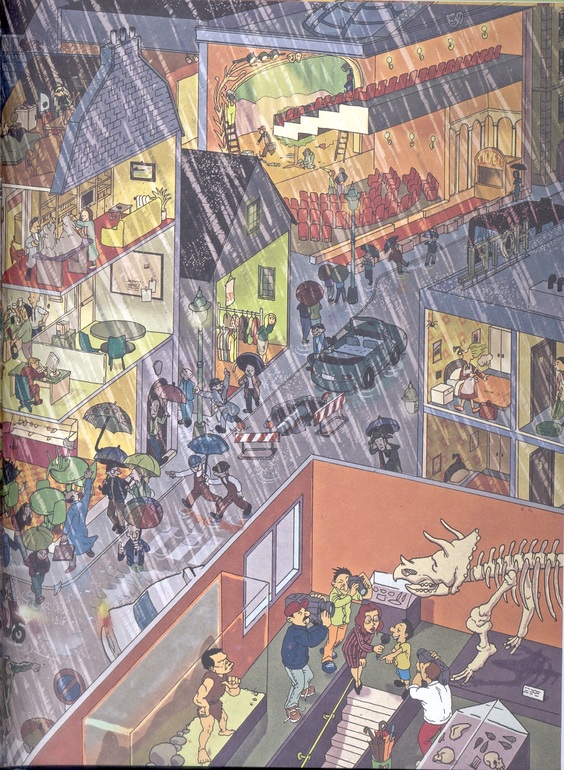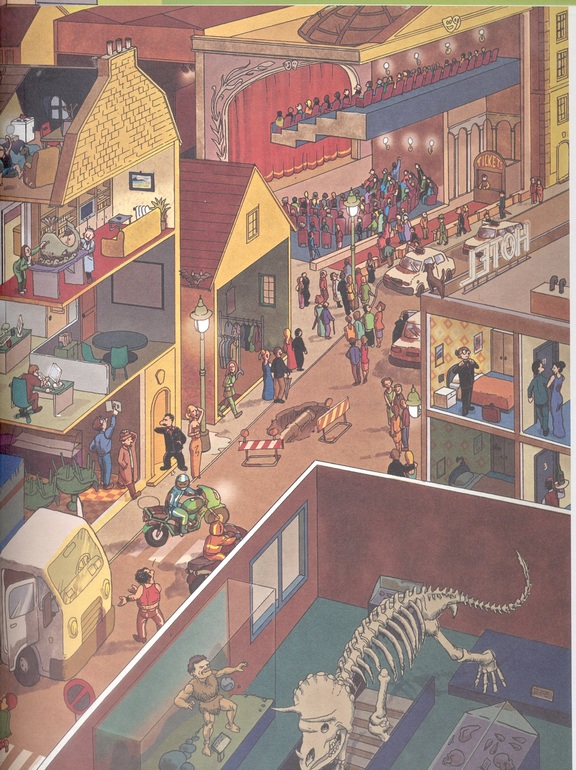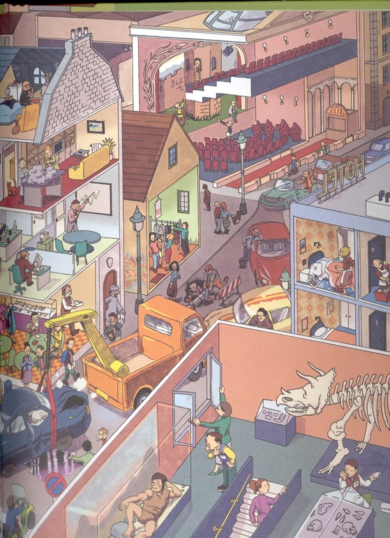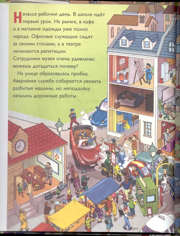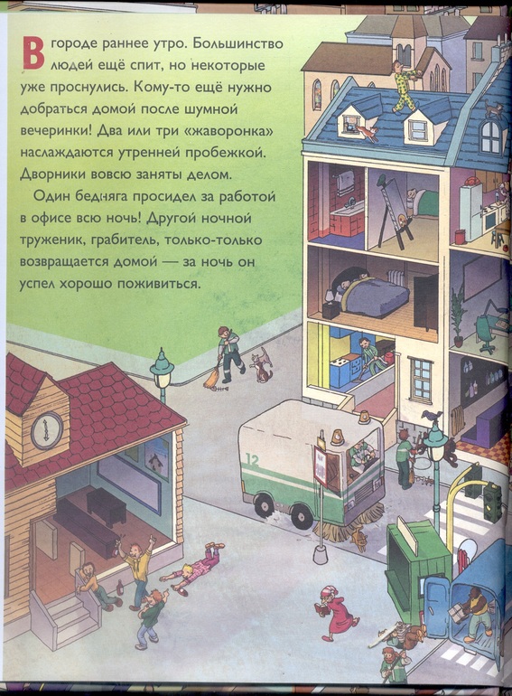 Предназначена, очевидно, для младшего школьного возраста. Не для таких малышей, как «аудитория» - «Городка» Ротраут Бернер, так как в этой книге «присутствуют» асоциальные персонажи - пьянчужки, жулики )). По стилю можно, наверное, отнести к виммельбухам. Хотя, есть текстовые задания.Ещё у нас есть «День в зоопарке» от этих авторов. Возможно кто-нибудь знает другие издания из серии «книга-картинка», кроме Ротраут Бернер.