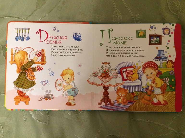 Не большая книга с картонными страницами содержит 6 стихотворений и 2 адаптированные сказки.