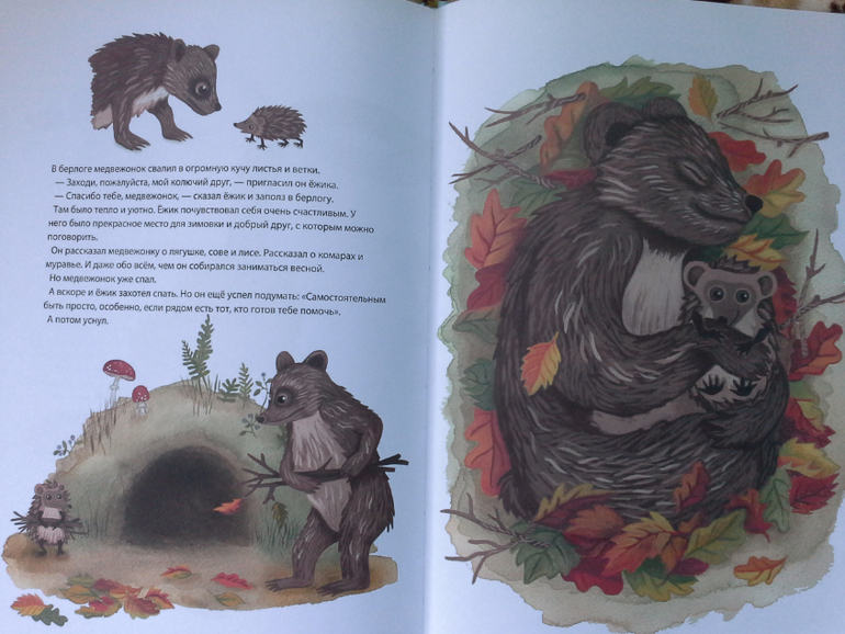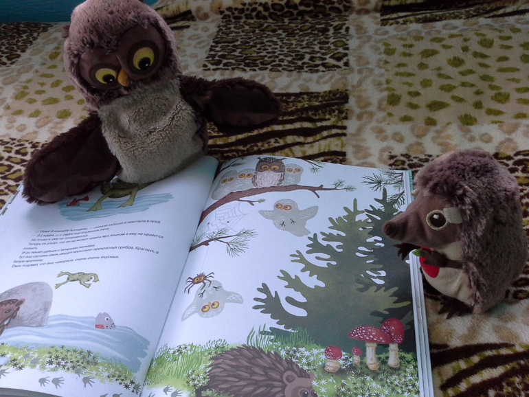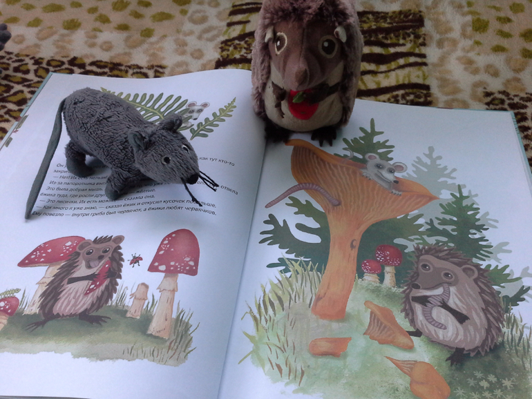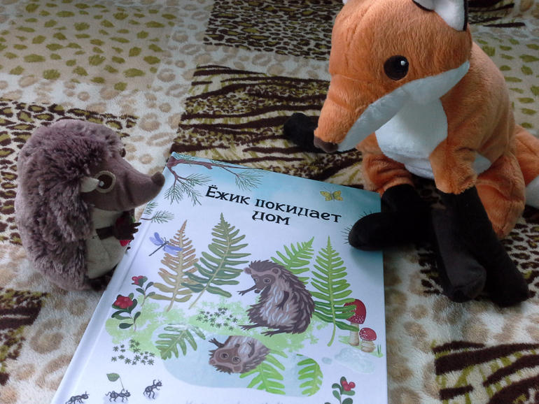"Ёжик покидает дом" читали и разыгрывали театр. Все игрушки и книга из Икеи. Как раз про осень, про то какие зверушки спать укладываются, а какие нет. Изучали следы зверей. Книга понравилась.