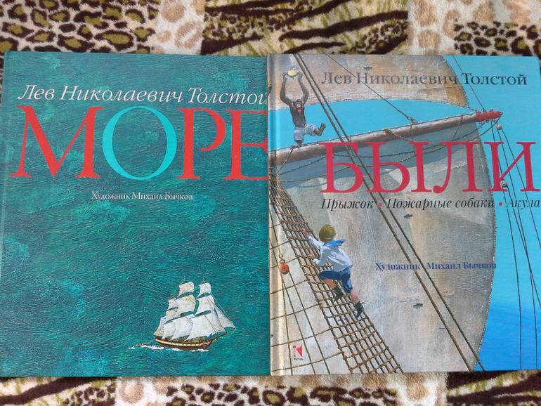 Еще хотелось бы сказать о двух книгах любимых в сентябре. В октябре я их припрятала - каюсь, но не было больше сил читать одно и то же. Это две книги написаные одним автором - Л. Толстым и проиллюстрированные одним художником - Михаилом Бычковым: Море и Были. Мы читали их в сентябре почти каждый день. Очень они понравились Светославу. Думаю большая заслуга в этом не только автора, но и художника.