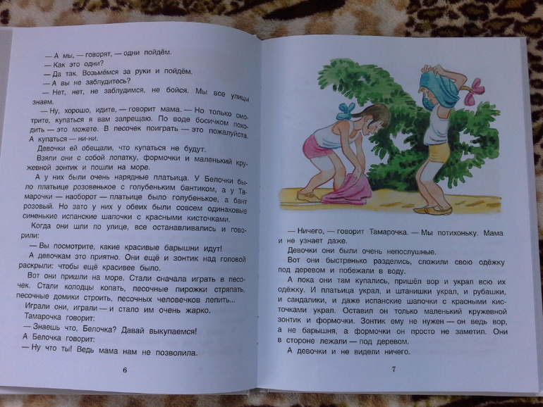 А на этом развороте художник перепутал цвета платьев у девочек.