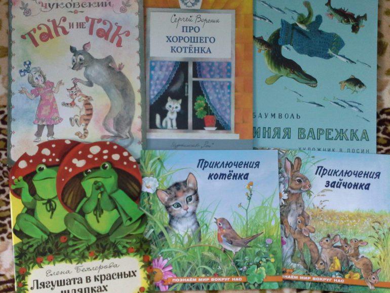 Из этих книг выделю "Лягушат" - очень понравилась книга и мне и сыну. Рахиль Баумволь - хорошо, но для сына скучновато. "Про хорошего котенка" - опять таки рано.