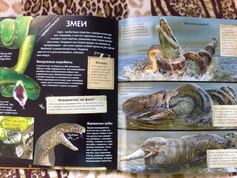 Из энциклопедий смотрели эту. Жаль этой серии сейчас в продаже нет. Купилабы про динозавров и космос. Очень понравилась подача материала: много всяких конвертиков, окошечек и т.п., что так нравится детям. Любимый разворот с анакондой пожирающей крокодила. Бррр. Но у детей имеет неизменный успех.