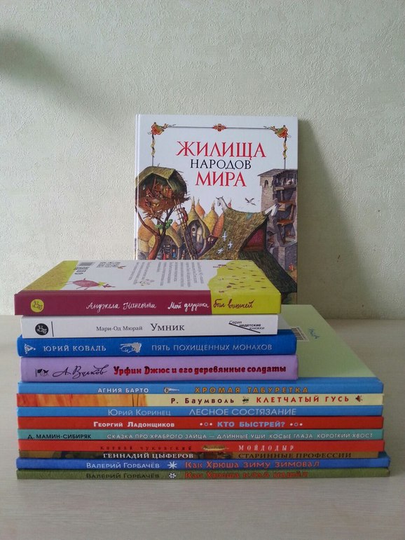 Двух книг здесь нет, у мужа на работе: подарки для сына на день рождение и Новый год. А еще стопочка книг от Розового жирафа в Москве у дочки, привезет только, когда приедет.