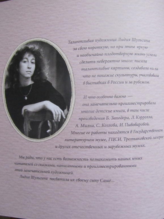 Книги Шульгиной - это книги-картинки, в них очень мало текста и много рисунков. Приятный бонус к книгам - небольшая информация об авторе. И вообще книги очень приятные на вид в пастельных тонах почти квадратной формы с достаточно плотной бумагой.