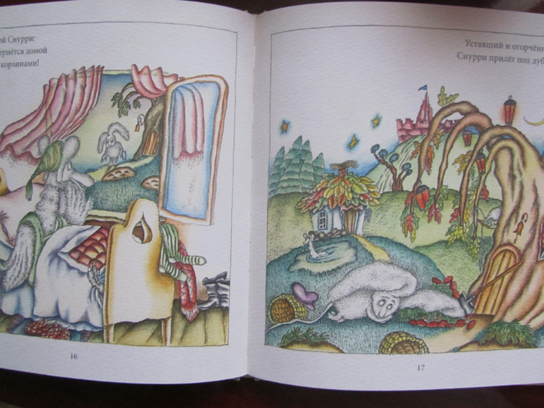 Немного отступлю от темы и скажу, что с творчеством Шульгиной впервые познакомилась по книгам сказок Испании и Италии и они на меня произвели неоднозначное мягко говоря впечатление. Но я благополучно положила книги в шкаф с мыслями - а ладно пусть будет для разнообразия. И вот только благодаря этим двум книгам я наконец рассмотрела всю сказочность её рисунков. Они такие по настоящему детские и необычные! Что говорить я теперь поклонница её творчества )) А теперь о самих книгах