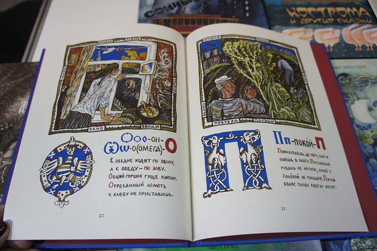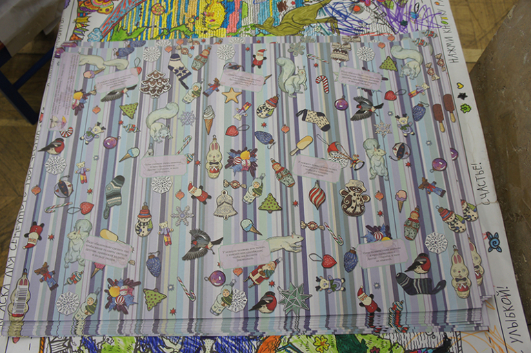 И уже с одной такой раскрашенной и делали эту книгу. Там на рисунках даже точечки от капель специально убирать не стали, чтобы оставить этот эффект ручной работы.
