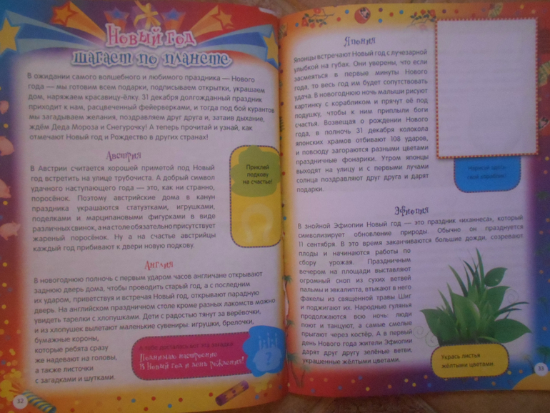 Ну очень она мне понравилась! А уж средней дочке (3 года) по-моему, еще больше! Ну так для нее и брали! В этом году она Новый год ждет с каким-то особенным нетерпением. В книжечке много интересной информации. Например такой: