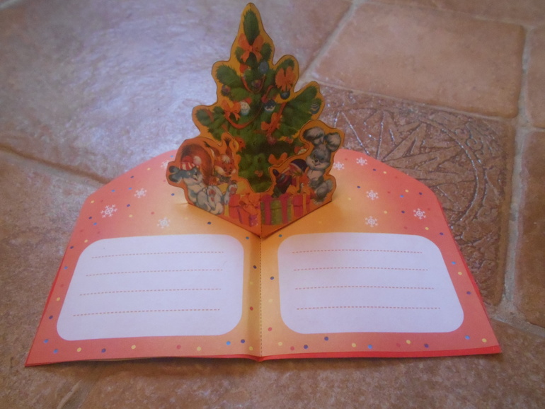 В конце бонус:) Можно сделать новогоднюю открытку по принципу "вырезай и клей".