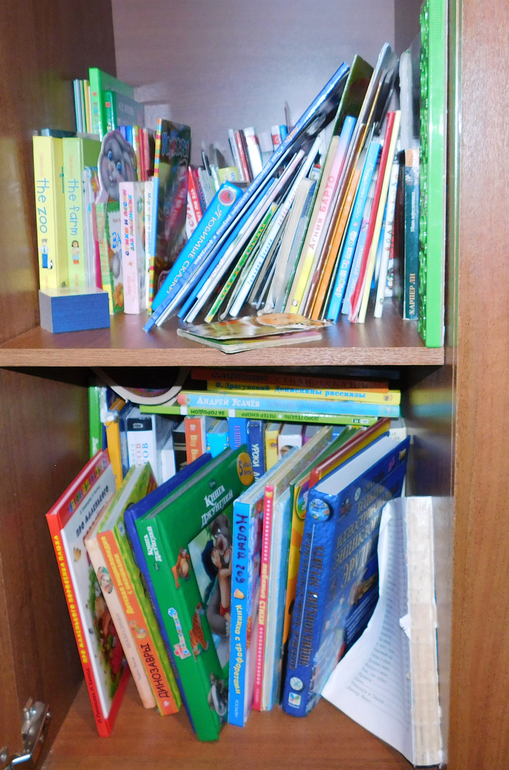 На полочке что в начале поста любимые (ну и новые) книги старшего, от младшего повыше)) хотя он тоже аккуратный у нас!