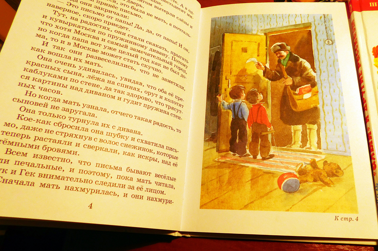 Долго выбирала "Чука и Гека" пока остановилась на этом, картинок не много, шрифт крупный, подойдет для самостоятельного чтения