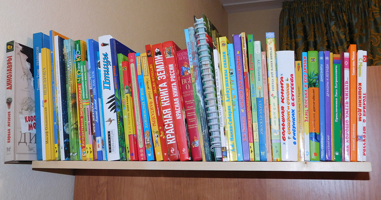 Родился второй сын, и я радуюсь возможности купить что*то интересное, и подходящее его возрасту, правда младший совсем другой, его книжкой не приманишь, ему планшет подавай! Так, начала собираться наша библиотечка. Особо масштабным на покупки оказался прошлый год благодаря возможности покупки книг через СП. Но мои желания часто не совпадают с возможностями, у нас очень мало места(( Под книги я приспособила шкаф в детской и уговорила мужа прикрутить полочки из икеи к стенке двуспальной детской кровати