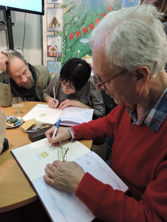 Фото стендов уже было много, поэтому покажу встречи и книги.