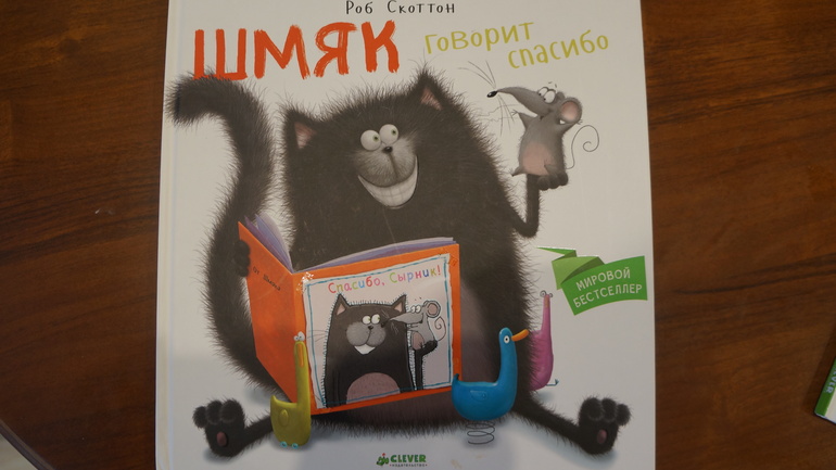 . О его существовании я, честно говоря, даже не подозревала, пока моя подружка, любимая наша тетя Аня, не привезла книгу "Шмяк говорит СПАСИБО" Роба Скоттона. Книга пришлась по душе Юнонке и каждый вечер мы ее перечитывали по два-три раза. Герой конечно очень милый черный котенок. Да и история весьма добрая. Потом коллекция пополнилась и другими историями. Ну и немного моего и Юнонкиного мнения об этих книгах под катом....