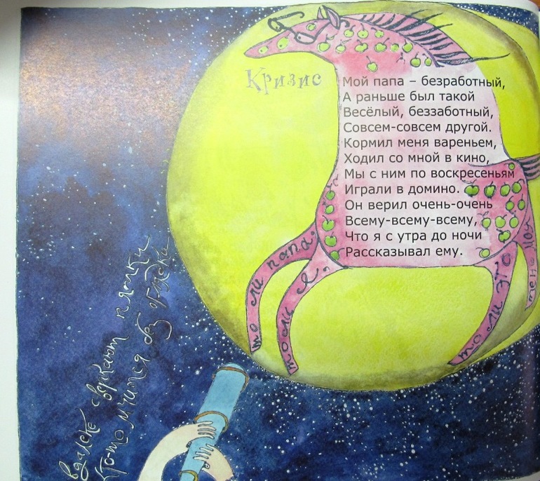 Иллюстраторы (красивые иллюстрации)Сегодня опять был совершен набег на книжный магазин, где, среди всего прочего я приобрела чудесную книгу под названием "Колыбельная для папы. Невзрослые стихи" (по крайней мере, я ее таковой считаю))). Иллюстрации, конечно, отличаются своеобразием и рассчитаны на любителя, но меня они покорили своей необычностью, какой-то хаотичной непокорностью и яркими оттенками. Как произведение книга представляет из себя сборник стихотворений. Все стихи легко читаются, даже, думаю, могут запоминаться на "ура" :) Есть и "злободневные" стихи, выражающие сегодняшний взгляд на этот мир, - стихотворение "Кризис", к примеру.