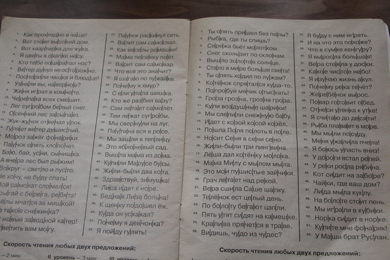 Ниже привожу примеры предложений, которые предлагаются для обучения. Они не самые легкие, исходя из звукового сочетания подобранных слов в предложениях, но я считаю, что так даже лучше! Если ребенок сразу будет иметь дело не с примитивными предложениями типа "Мама мыла раму,", а со сложными, то и прогресс пойдет быстрее!