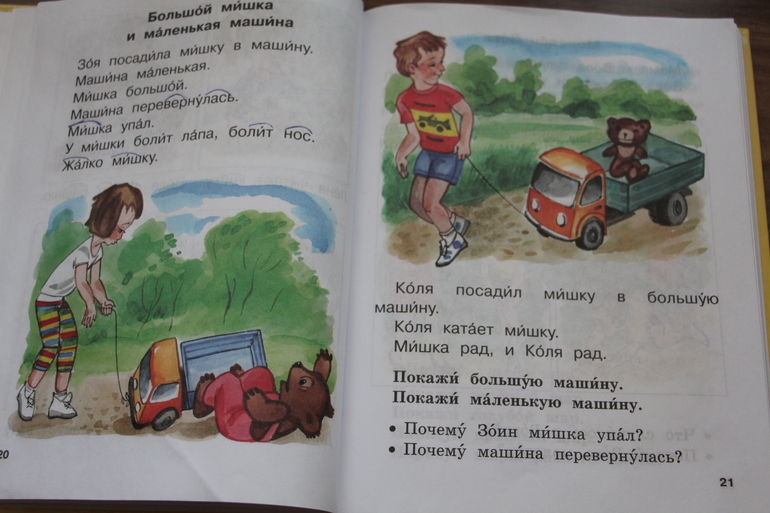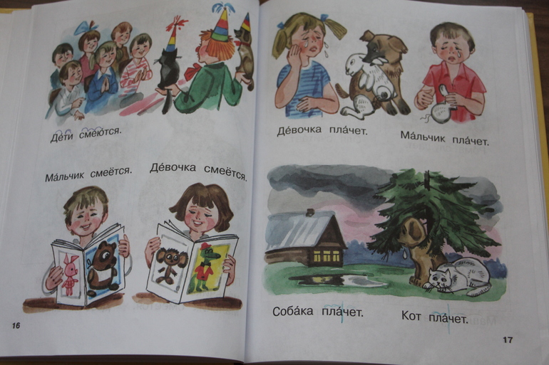 Здесь простые предложения даются лишь на первых страницах, а затем ребенок уже должен начинать читать небольшие тексты, с постепенным усложнением...