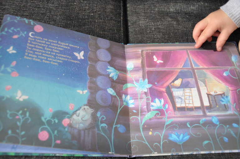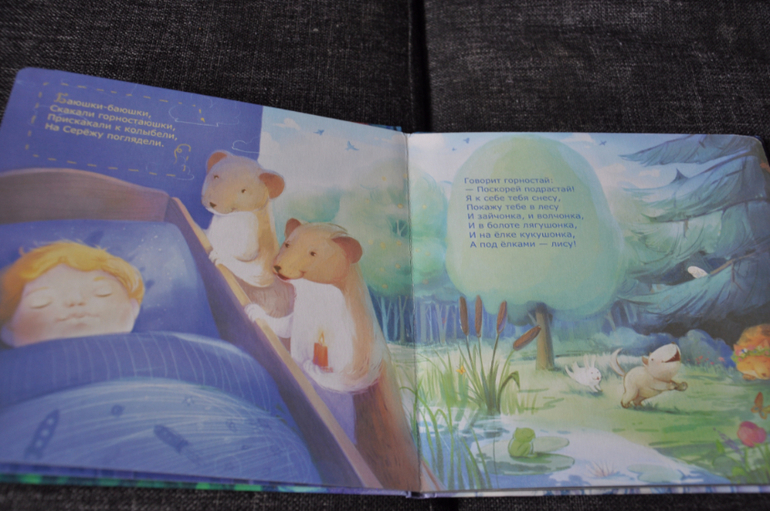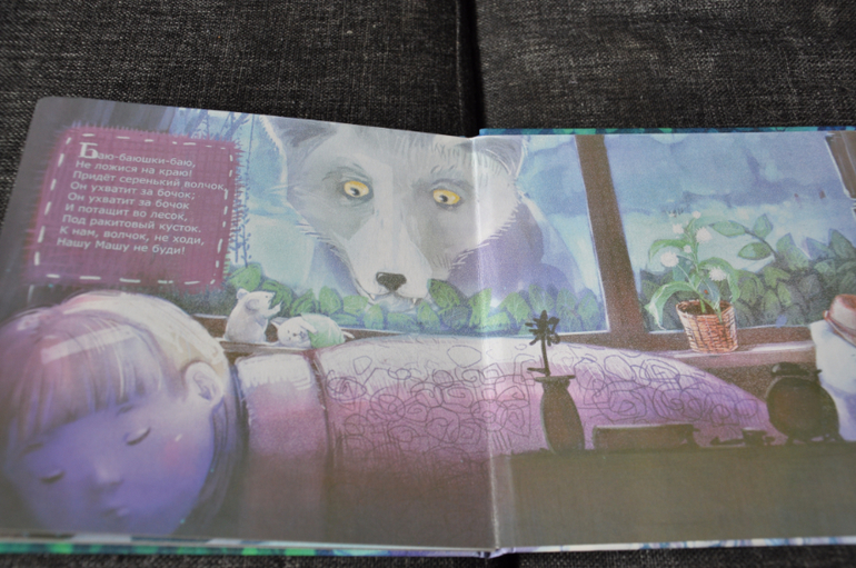 8 страниц на тонком картоне,обложка глянцевая и плотная, все радует глаз. И стихи про сонного мишку, и про траву, и деревья, и жучка, и паучка))) НО!! самое классное- последнее стихотворение-НЕ ЛОЖИСЬ НА БОЧОК, А ТО ПРИДЕТ ВОЛЧОК. Посмотрите какой ОГРОМНЫЙ волк!!!!))) Это прелесть!!! какое детство без этого стишка!!!!!!!!!
